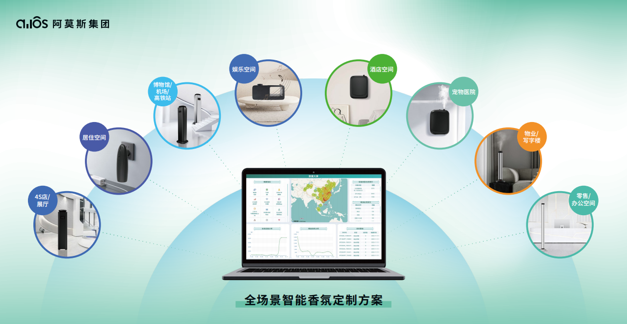 首次发布“阿莫斯智能香氛生态联创计划”,提供从香型定制、智能设备部署到数据化运维的全周期解决方案,助力合作伙伴构建品牌专属嗅觉标识,共拓“万亿空间嗅觉经济”。