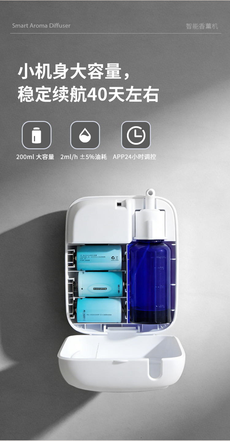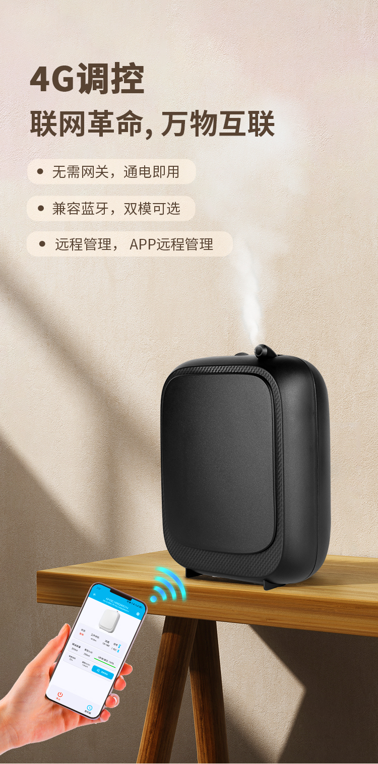 时尚简约造型,小机身,大容量,兼容美观及实用效果;可使用3节1.5V电池,亦可外接5V USB电源,4G远程调控,在工作12小时制状态下,电池可续航220天,适用于各种小面积环境。 适用场所:酒店、卫生间、家用、电梯间等...